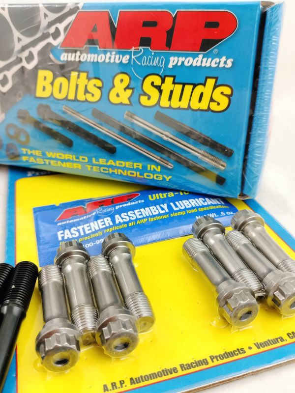 ARP è ormai leader mondiale nei sistemi di fissaggio ad alta resistenza. Che si tratti di bulloni speciali per biella, prigionieri di fissaggio dei supporti di banco per albero motore, kit prigionieri testa o viti di fissaggio volano l'unico prodotto in commercio che assicura il massimo delle prestazioni e della resistenza sono i prodotti ARP. Non potevano quindi mancare nei nostri cataloghi e nei nostri lavori. Tutti i motori e le preparazioni eseguite dal nostro team prevedono nella quasi totalità delle applicazioni l'utilizzo dei Bulloni speciali di fissaggio ARP. Sempre utilizzati in tutte le nostre preparazioni per il fissaggio delle bielle in acciaio oppure anche del tipo originale, dove i regolamenti non permettono la sostituzione delle bielle optiamo sempre per la sostituzione dei bulloni originali, troppo deboli per l'utilizzo nelle competizioni, con dei kit specifici creati da ARP per poterli sostituire a quelli originali.