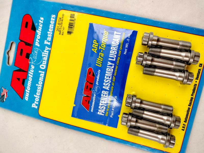 Bulloni per bielle originali motore BMW M3 E46, ARP Bolts rinforzati in acciaio speciale per preparazione motori. Le bielle originali installate su questo tipo di motore garantisce una buona affidabilità e resistenza, la qualità del materiale utilizzato già in origine e ottima anche per applicazioni spinte e preparazioni. Unico punto debole è il sistema di fissaggio originale delle bielle. La sostituzione dei bulloni biella originali con questo kit ARP garantisce un ottima resistenza e affidabilità al sistema di fissaggio.
