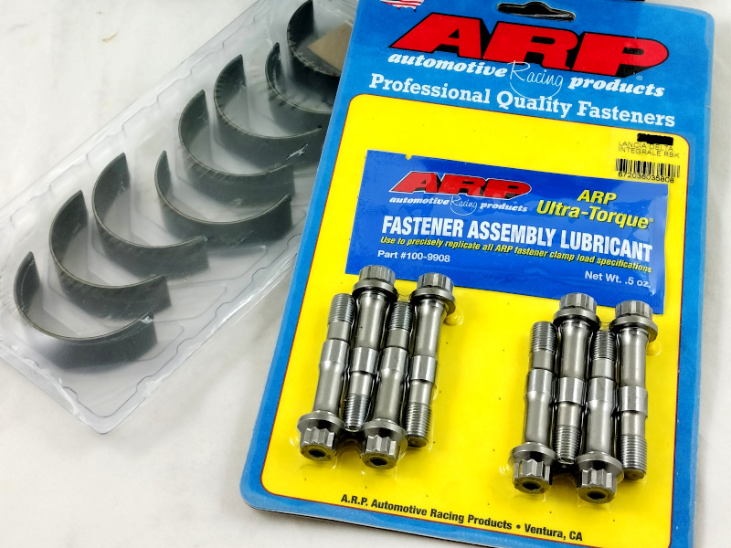 Dove il regolamento lo permette oppure per preparazioni di motori ad uso stradale o Track-day la sostituzione delle bielle originali con Bielle speciali in Acciaio forgiat con forma ad H oppure ad I è la prima cosa da effettuare. La rottura di una delle bielle originali durante l'utilizzo al limite del motore porterebbe un danno enorme, con un dispendio di denaro per il ripristino del motore che supera di gran lunga il costo di un set di bielle Speciali. Consigliamo sempre ai nostri clienti, ed in alcuni casi riteniamo obbligatoria, l'adozione di un set di bielle speciali in acciaio ovviamente con bulloneria ARP per il suo montaggio. In commercio si trovano kit di bielle in acciaio già equipaggiate con bulloneria ARP, in ogni caso, per la sostituzione di questi bulloni, in seguito a ripetuti smontaggi e rimontaggi (noi consigliamo di sostituire i bulloni biella dopo l'utilizzo e 3 successivi serraggi, oppure nel caso di fuori-giri o altri avvenimenti pericolosi per la loro resistenza) ARP offre dei kit di bulloni per bielle in Acciaio da sostituire a quelli presenti sulle bielle. ARP propone diversi materiali per questi bulloni in base alla resistenza necessaria. I set di bulloni per biella vengono identificati come ARP2000 (220.000 psi) L19 (260.000 psi) e Custom Age 625 Plus (260.000-280.000 psi)