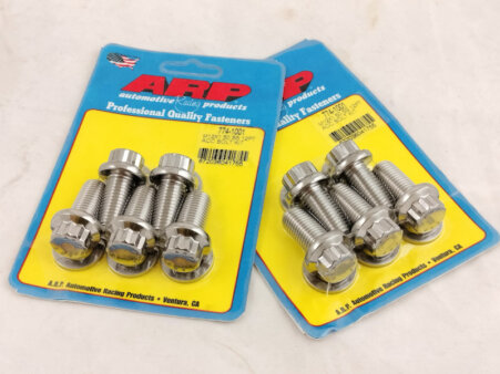 Bulloni speciali ARP per fissaggio volano motori Alfa Romeo. Garantiscono una resistenza nettamente superiore ai normali bulloni volano montati di serie sui motori per garantire un affidabilità ed una sicurezza maggiore soprattutto per motori utilizzati in competizioni motoristiche ed in seguito all'utilizzo di frizioni in rame e del tipo rinforzato. Le sollecitazioni che il volano ed il suo fissaggio all'albero motore devono subire necessita di un fissaggio di qualità e resistenza superiore.