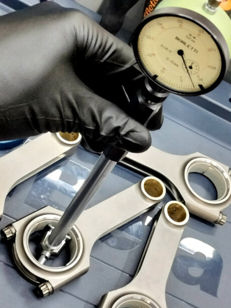 Questo è quello che ci contraddistingue da più di 15 anni. La preparazione di un motore da competizione deve essere paragonato ad un opera d'arte, non ci sono catene di montaggio, non ci sono procedure standard da poter applicare, solo la manualità ed un lavoro prettamente artigianale portano al risultato. Ogni singolo componente utilizzato deve esse verificato, misurato e modificato. Dalla base di preparazione dell'albero motore con alleggerimento e processi di nitrurazione e lucidatura, alla scelta delle bronzine speciali trimetalliche, l'adeguamento della giusta tolleranza, tutto in funzione delle caratteristiche che il motore che stiamo preparando dovrà avere. La scelta dei giusti ricambi per elaborazione motore, dai pistoni forgiati ad alto rapporto di compressione alle bielle in acciaio ad H con bulloneria speciale, fino alla modifica degli stessi per adeguare rapporto di compressione, squish e passaggio valvole. Queste operazioni possono essere eseguite solamente con l'esperienza necessaria ad ottenere le caratteristiche necessarie per la creazione di un motore ad alta potenza specifica, che si tratti di un motore aspirato oppure turbo sovralimentato. La preparazione della testata con lavorazione e lucidatura dei condotti, valvole maggiorate, scelta del giusto profilo di albero a camme con l'aggiunta di molle valvole rinforzate, piattelli leggeri e punterie meccaniche completa la definizione della parte alta del motore.