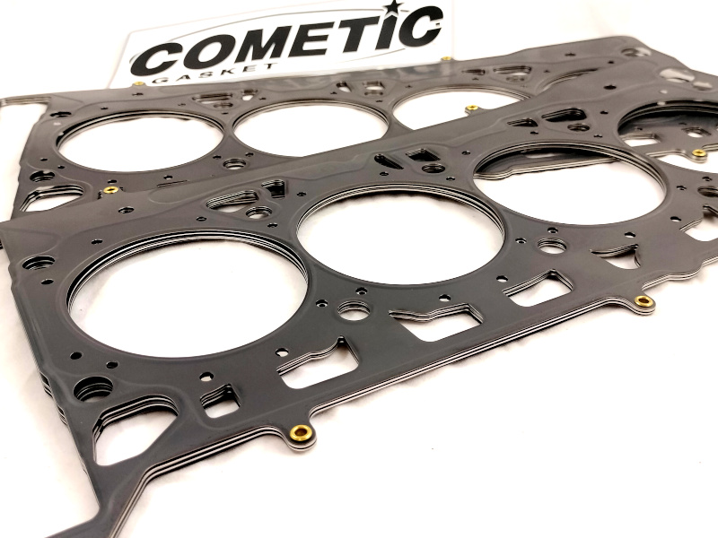 Serie guarnizioni testa speciali Lamellari Multistrato in Acciaio Cometic. Lo speciale materiale utilizzato e il disegno con nervature di rinforzo conferiscono alle guarnizioni lamellari Cometic una resistenza e un affidabilità superiori alle normali guarnizioni testa. Indicate per la preparazione di motori Aspirati quando l'innalzamento del rapporto di compressione mette a dura prova le guarnizioni originali o anche le rinforzate bordate in acciaio inox. Consigliato l'abbinamento con un Kit ARP di prigionieri per la testata.
