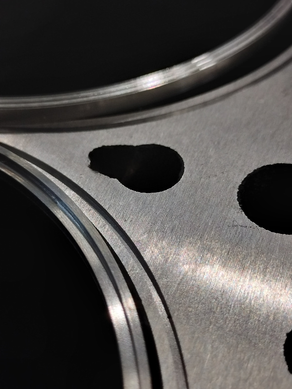 e l'altro lato presenta delle cuspidi ( altezza 0,07 mm) che possono essere 2 o 3 a seconda della larghezza dell'anello. Queste cuspidi durante il serraggio della testata si imprimono nell'alluminio andando a creare un legame con la testata stessa che permette la maggior tenuta possibile rispetto a qualsiasi altro tipo di guarnizione. Gli anelli possono essere da appoggio o da incasso (nel caso fosse ricavato un apposito incavo nel basamento o nelle canne) gli spessori utilizzabili vanno da 1 mm a spessori anche maggiori di quelle bordate, il nostro consiglio e di non andare mai oltre ai 2 mm.
