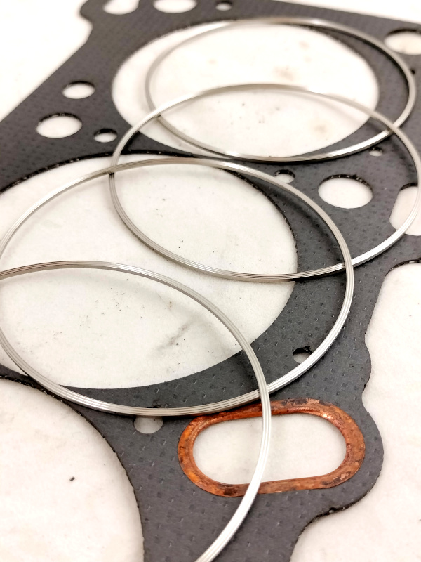 Questo tipo di guarnizione garantisce le migliori performance in termini di resistenza e affidabilità. L'Anello realizzato interamente in acciaio con le cuspidi nella parte superiore può essere utilizzato in appoggio sul basamento o da incasso. Le cuspidi della parte superiore vanno montate verso la testata in alluminio dove si andranno ad imprimere per garantire la massima tenuta possibile. La parte piatta dell'anello andrà ad appoggiare sul basamento o sulle canne (consigliamo spianatura basamento con rettifica tangenziale), per incrementare ulteriormente la tenuta si può ricavare un incavo nel basamento e montare anelli appositamente realizzati per incasso. Questo tipo di guarnizione garantisce in assoluto la resistenza maggiore (superiore alle guarnizioni multistrato in acciaio). La guarnizione può essere realizzata con diversi spessori, minimo da 1 mm a salire. Consigliata per preparazioni importanti è l'unica soluzione affidabile quando lo spessore della guarnizione deve superare i 2mm.
