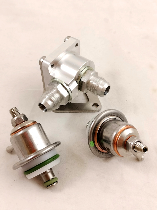 Con il regolatore pressione benzina Jenvey è possibile modificare la pressione di esercizio del sistema ad iniezione elettronica che si va a gestire. Il supporto dotato di attacchi aeronautici AN6 è compatibile per l'alloggiamento sia dei regolatori fissi, che si possono acquistare con taratura fissa della pressione benzina, oppure regolabili come quelli in foto per poter settare la pressione migliore di esercizio.