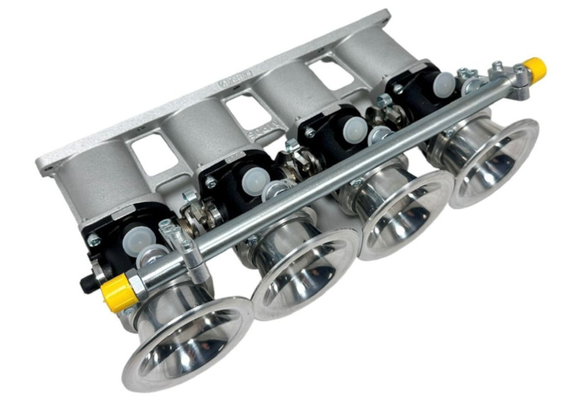 Il kit BMW Individual Throttle Body (ITB) per l'iniezione nel tuo motore BMW M10 a 4 cilindri di Jenvey Dynamics include una coppia di corpi farfallati TB45, un collettore di aspirazione EFI Jenvey Dynamics, una rail del carburante e trombette da 90 mm. I corpi farfallati Jenvey e tutti gli accessori associati sono progettati per il Motorsport, offrendo eccellenti prestazioni, affidabilità, leggerezza e convenienza. Questo kit è ideale per uso stradale, in pista o nei rally. Il motore M10 è stato utilizzato in molti modelli BMW degli anni Settanta, tra cui l'iconica BMW 2002. Disponibile anche il setup Heritage per auto d'epoca, iniezione elettronica con il fascino del carburatore