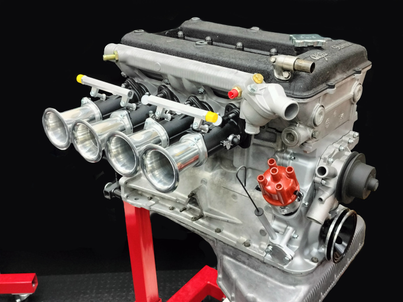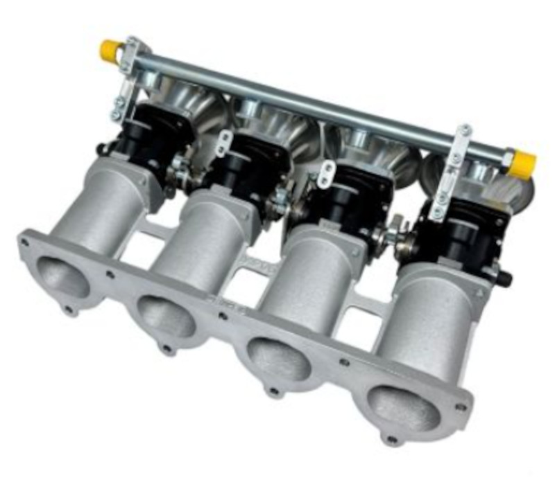 Questo kit di aspirazione viene realizzato su ordinazione per il motore Alfa Romeo Boxer. Il kit è composto da collettore di aspirazione per il fissaggio alla testata di 4 corpi farfallati singoli completi con trombette di aspirazione, leveraggio per acceleratore e sincronizzazione farfalle e 2 flauti iniettori con attacco AN6 per collegare il sistema di alimentazione benzina. Ideali per la preparazione del motore Boxer Alfa Romeo nelle sue versioni 16 Valvole. Il sistema di iniezione elettronica deve essere gestito con un apposita centralina programmabile da competizione. Le nostre centraline EFI Technology Euro2Plus ed Euro4 possono essere utilizzate per l gestione di questo motore.