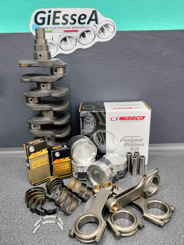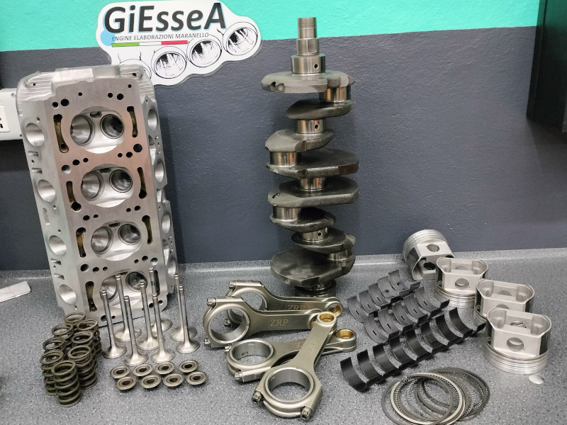 Kit preparazione motore Forgiato Lancia Thema 8 Valvole - Lancia Delta HF 4WD. Il kit prevede diverse lavorazioni sia sull'albero motore sul quale è stato fatto il processo di Nitrurazione per migliorare le caratteristiche di resistenza e di scorrevolezza, lucidatura dei perni di Biella e di quelli di Banco, equilibratura e pulizia profonda albero motore. Utilizzo di bielle in acciaio forgiate ad H ZRP con bronzine trimetalliche speciali King Racing, le stesse bronzine sono state installate anche sui supporti di banco albero motore per garantire la miglior resistenza e performance. Pistoni forgiati diametro 84,50 per rettifica canne cilindro. La testata è stata revisionata con la rettifica delle sedi valvole e della valvole per garantire la migliore tenuta, lucidatura dei condotti e delle valvole per favorire il riempimento volumetrico della camera di combustione. Un altro bellissimo kit completo per elaborazione motore.