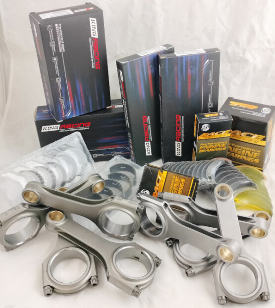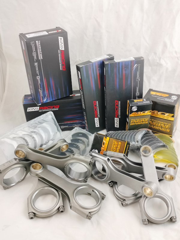 Le marche da noi trattate sono fra le migliori del mercato, non potrebbe essere diversamente, ACL Bearing e King Racing. Queste due marche offrono prodotti "simili" ma con caratteristiche differenti che possono dare un vantaggio se sapute sfruttare al meglio. La prima cosa da verificare è la tolleranza fra perni di banco e biella e bronzine, un valore esageratamente basso può essere corretto solamente mediante barenatura e ripristino della tolleranza giusta dell'alloggiamento in cui la bronzina viene montata. Se il problema è limitato allora ci vengono in aiuto le bronzine ACL o King denominate Extra Oil, che hanno in media un paio di centesimi in più di tolleranza delle standard. Con l'utilizzo di queste bronzine si ha la possibilità di regolare a piacimento la giusta tolleranza che occorre per il tipo di preparazione che si sta eseguendo. Un secondo parametro molto importante e la scelta della composizione e della finitura superficiale della bronzina, entrambe le marche offrono diverse soluzioni in merito, sta sempre al preparatore capire la migliore da adottare.