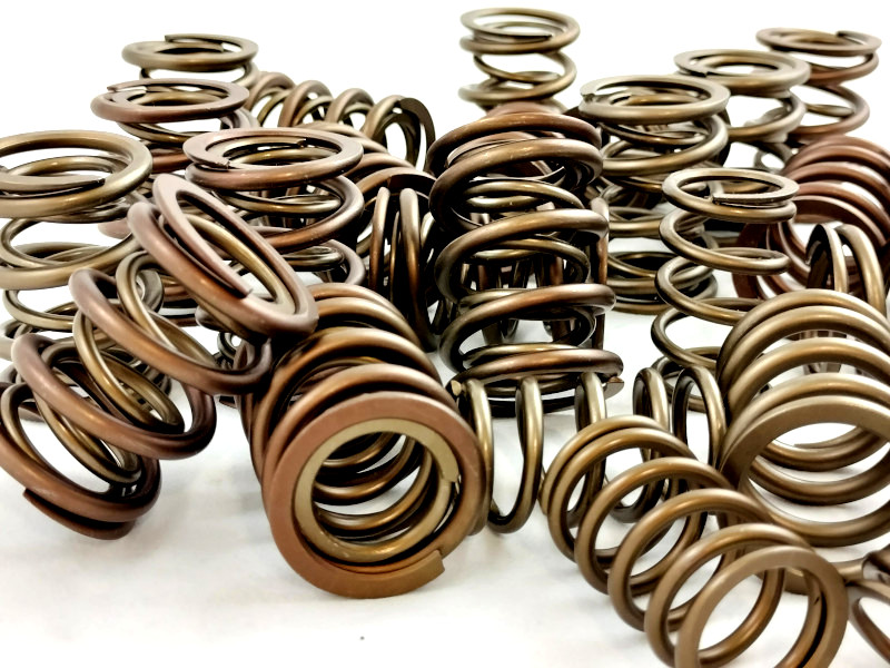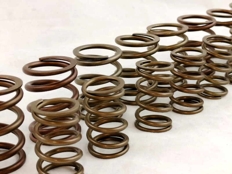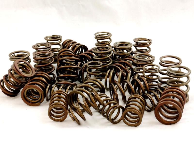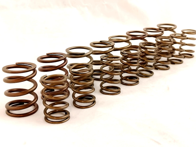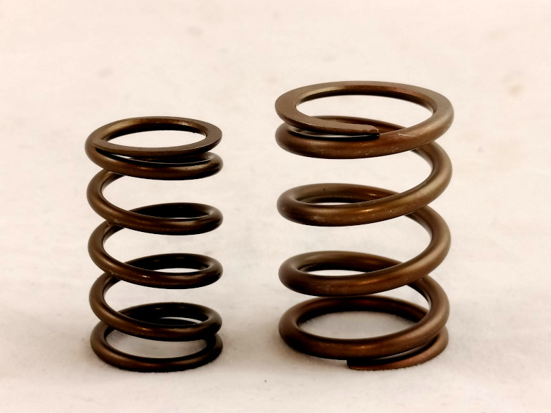 Kit Molle valvole doppie rinforzate speciali interna ed esterna per sostituzione delle originali sui motori Fiat 1.1 1.3 1.4 1.6 128 x1/9 Tipo Uno Turbo PuntoGT Lancia Delta. Per l'utilizzo di profili di camme speciali con alzate maggiorate per preparazione motori fino a 9000 rpm. Il trattamento speciale di queste molle valvola permette di sopportare aperture valvole oltre i 13 mm e regimi di rotazione motore superiori a 8000 rpm. L'aumento del carico molla assicura maggior affidabilità del motore per utilizzo sportivo e da competizione racing